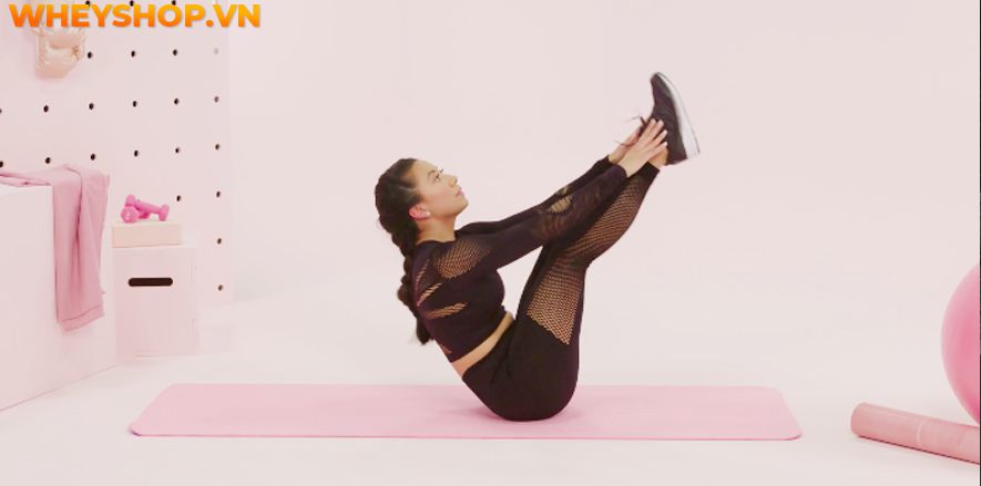 - Nâng cao 2 chân cùng lúc, đồng thời nâng vai, ngực lên khỏi sàn để hai tay chạm tới chân. Sau đó trả toàn bộ về vị trí cũ.