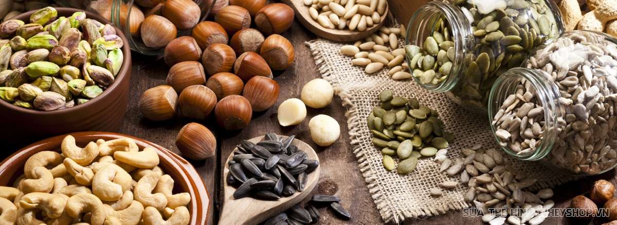 - Quả hạch và hạt: quả óc chó, hạt dẻ, hạnh nhân, hạt chia…