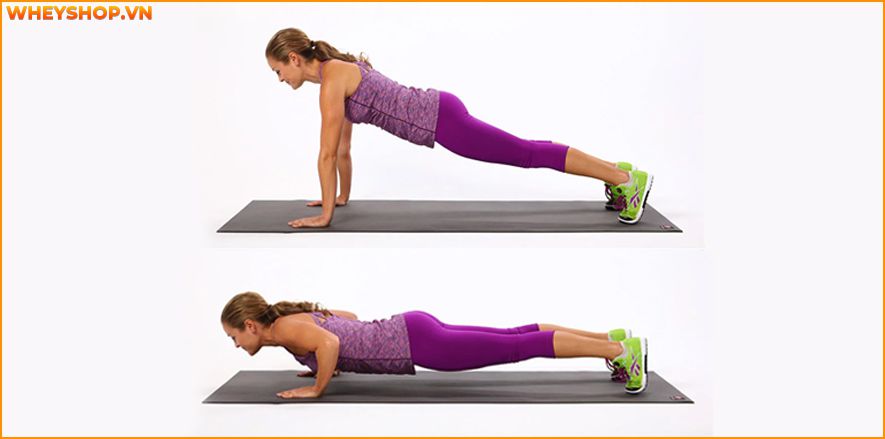 - Vào tư thế hít đất với hai tay chống trên sàn