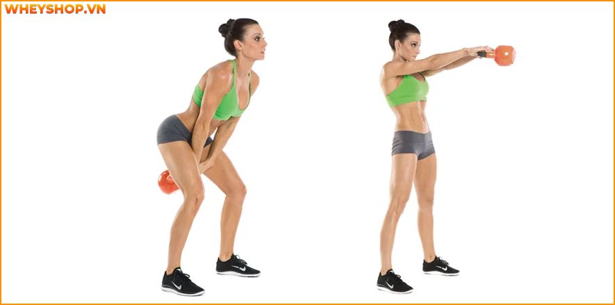 - Vung tạ lên và đứng lên bằng cơ đùi, hông và cơ vai, giữ thẳng lưng