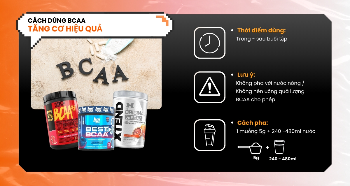 - Ngoài ra, có thể uống BCAA trước buổi tập để tăng sức bền và hỗ trợ siết cơ