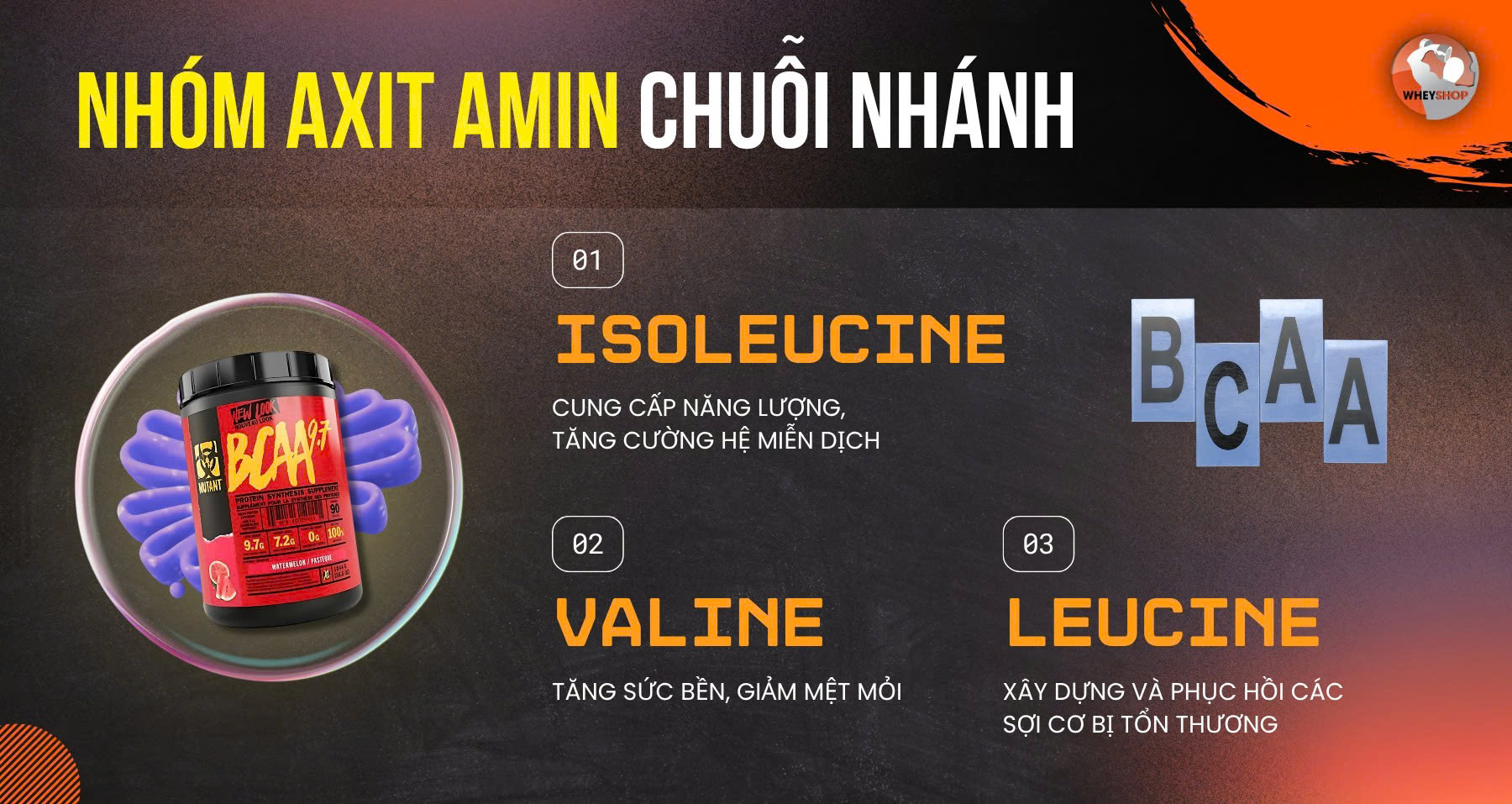 BCAA là cái tên không còn xa lạ đối với nhiều gymer, vận động viên chuyên nghiệp. Nhưng BCAA là gì, 3 thành phần chính leucine, valine, isoleucine có tác dụng gì? Hãy cùng Wheyshop tìm hiểu chi tiết trong bài viết này.