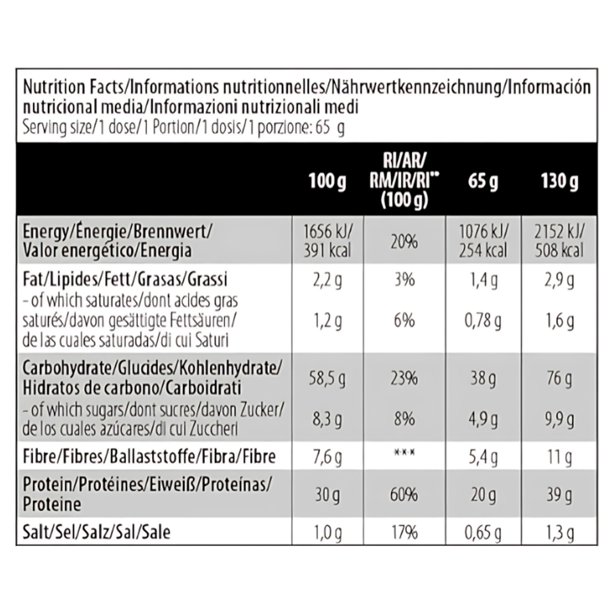 Một sản phẩm Hyper Mass chứa khoảng 34 lần dùng và trong mỗi serving có chứa: