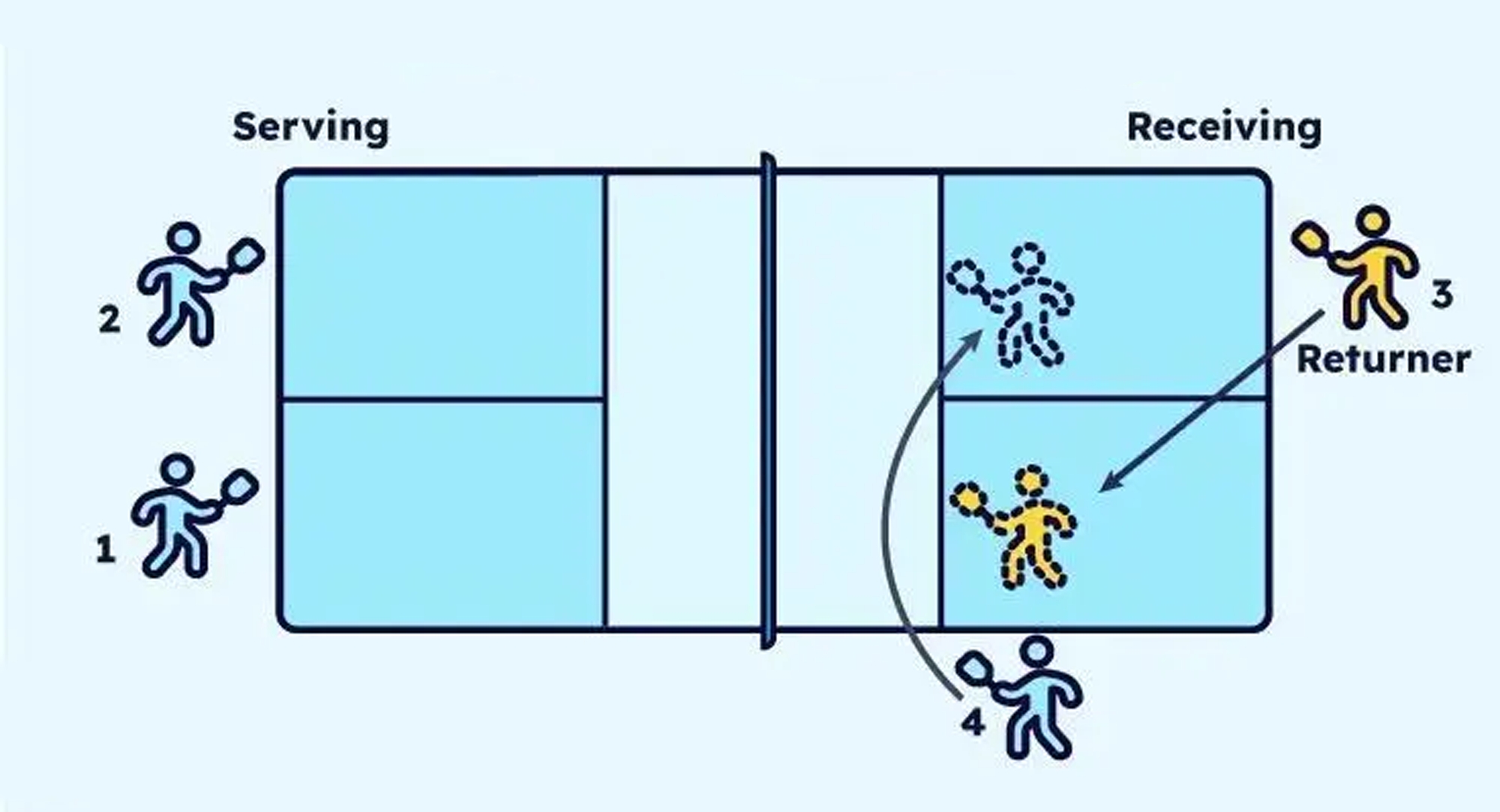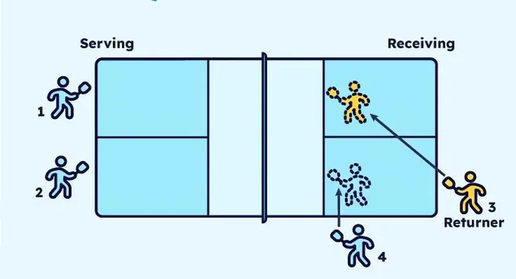 Đôi khi, đối thủ sẽ nhắm vào người chơi yếu hơn hoặc góc sân ít thuận lợi. Khi đó, đổi vị trí nhanh chóng là một kỹ thuật đôi pickleball quan trọng để giảm áp lực cho người bị ép.