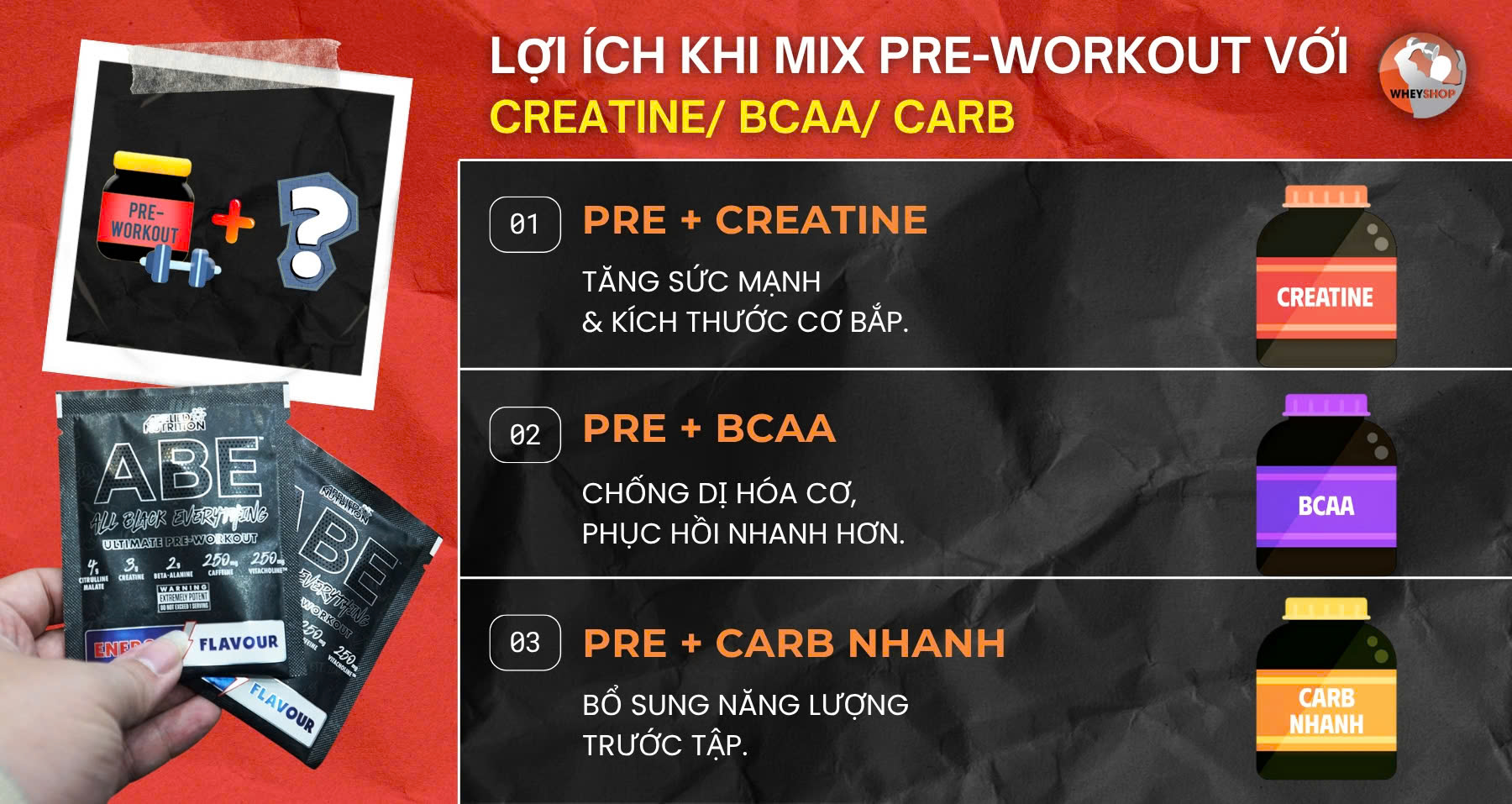 Có nên mix Pre Workout cùng Creatine, BCAA hay Carb không?