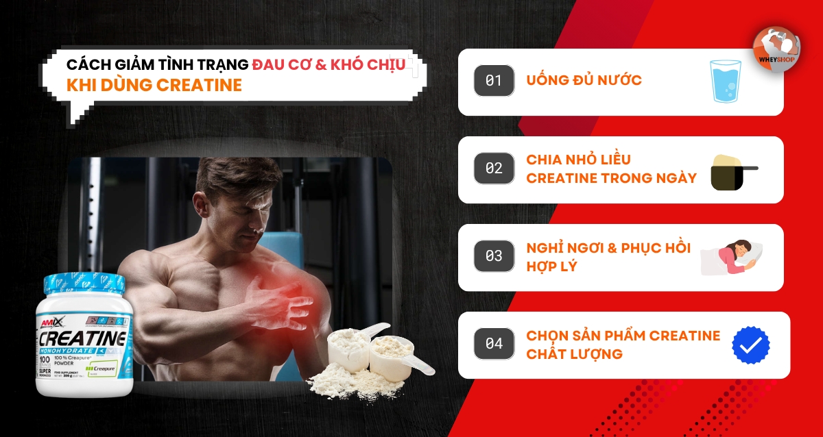 4. Cách giảm tình trạng đau cơ hoặc khó chịu khi dùng Creatine