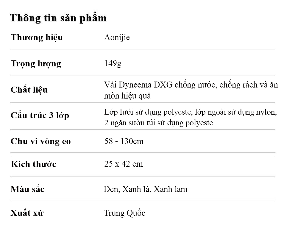Đai Aonijie được làm từ chất liệu chống thấm nước nhẹ giúp bảo vệ các vật dụng như điện thoại, chìa khóa khỏi bị ướt khi gặp mưa nhỏ.
