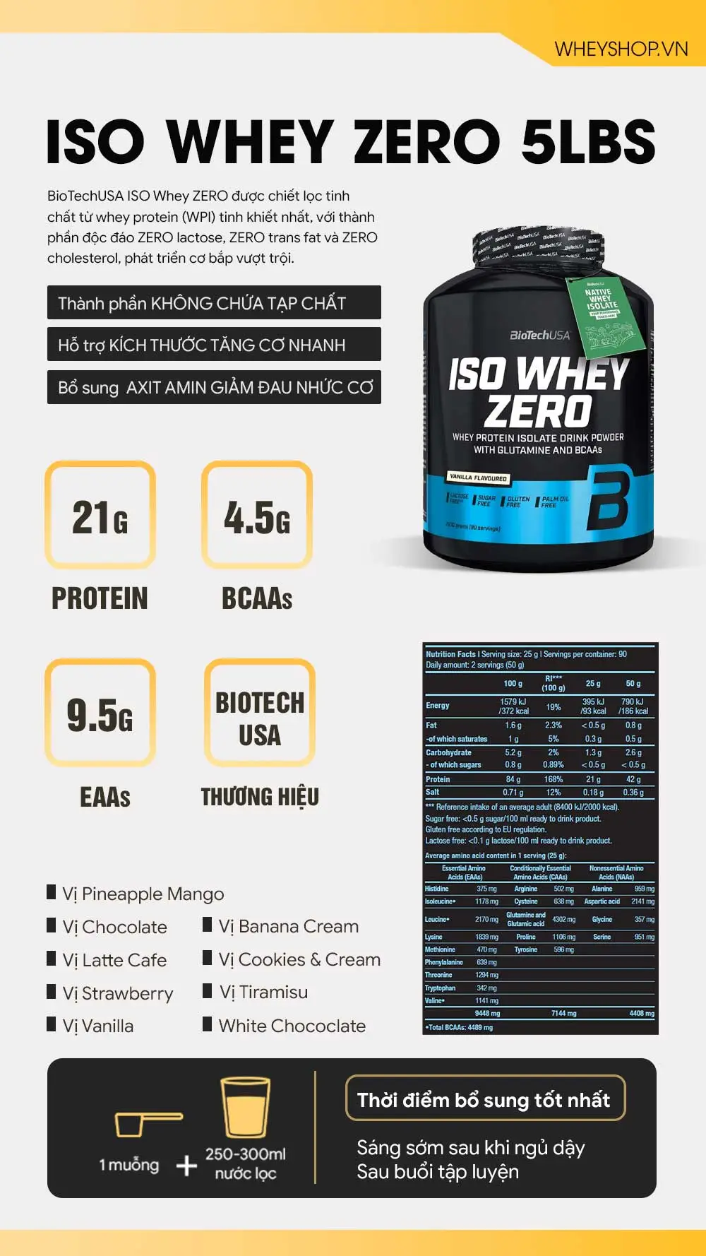 | Thành phần chính ISO Whey Zero | 5lbs (2.27 kg) |