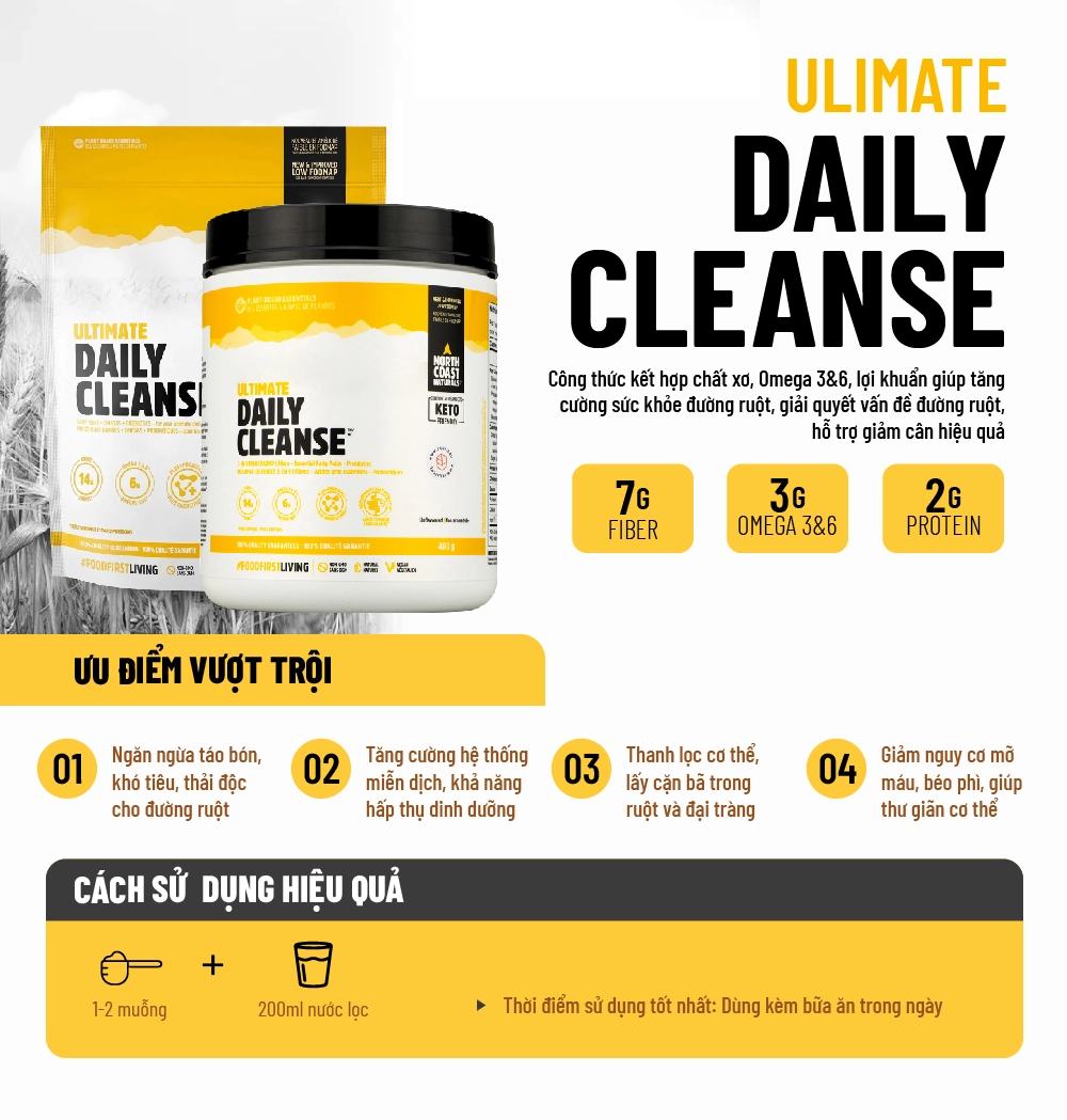 Ultimate Daily Cleanse là sản phẩm bổ sung chất xơ và chất béo tốt cho người dùng, đem đến hiệu quả: