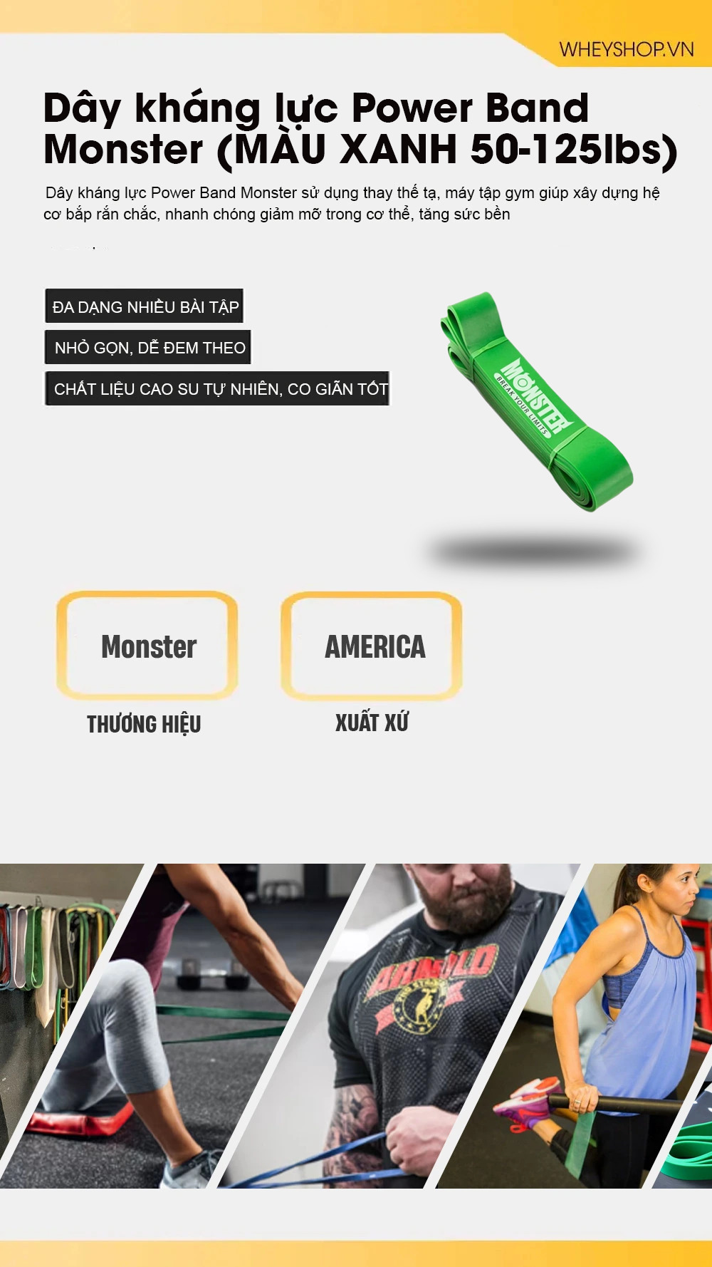 WheyShop là hệ thống bán lẻ thực phẩm bổ sung uy tín hàng đầu tại Việt Nam, được nhiều vận động viên và người tiêu dùng tin tưởng lựa chọn. WheyShop cam kết cung cấp sản phẩm Dây kháng lực Power Band Monster chính hãng, có đầy đủ giấy tờ chứng nhận nguồn gốc và chất lượng. Đội ngũ tư vấn viên chuyên nghiệp, giàu kinh nghiệm, sẵn sàng hỗ trợ khách hàng lựa chọn sản phẩm phù hợp và giải đáp mọi thắc mắc.