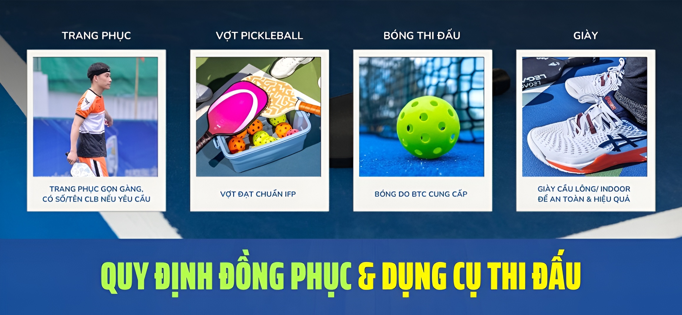 - Vợt Pickleball: cần đạt tiêu chuẩn về kích thước, chất liệu theo quy định của Liên đoàn Pickleball quốc tế.