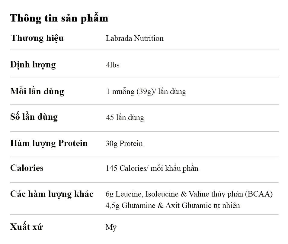 Thương hiệu: Labrada Nutrition Xuất xứ: Mỹ |