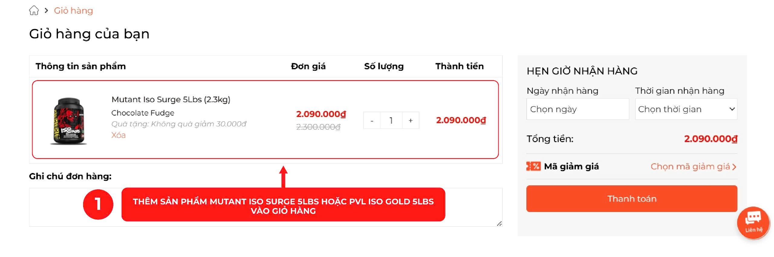 Truy cập vào website: wheyshop.vn. Tiến hành thêm 2 sản phẩm PVL Iso Gold 5lbs hoặc Mutant ISO Surge 5lbs vào giỏ hàng.