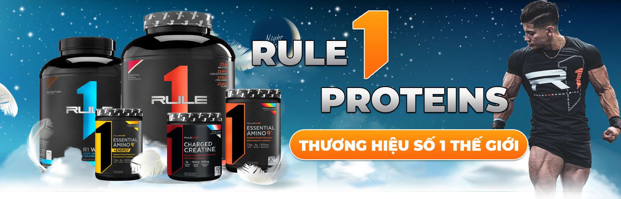Thương hiệu thực phẩm bổ sung đình đám nhất trong năm 2021 bởi chất lượng vượt trội cùng mức giá rẻ không tưởng. Tiêu biểu những sản phẩm bán chạy được công ty Nutri phân phối như : Rule 1 Protein, Rule 1 Blend, Rule 1 Mass, Rule 1 Creatine,…