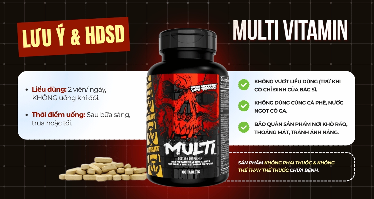 Để Mutant Multi Vitamin phát huy tối đa công dụng trong việc tăng cường sức khỏe, phục hồi và cải thiện hiệu suất tập luyện, bạn cần sử dụng đúng cách và đúng liều lượng. Dưới đây là hướng dẫn chi tiết: