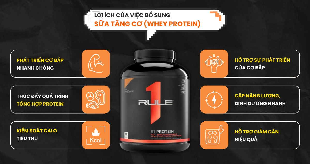 1. Lợi ích của việc bổ sung sữa tăng cơ (Whey Protein)