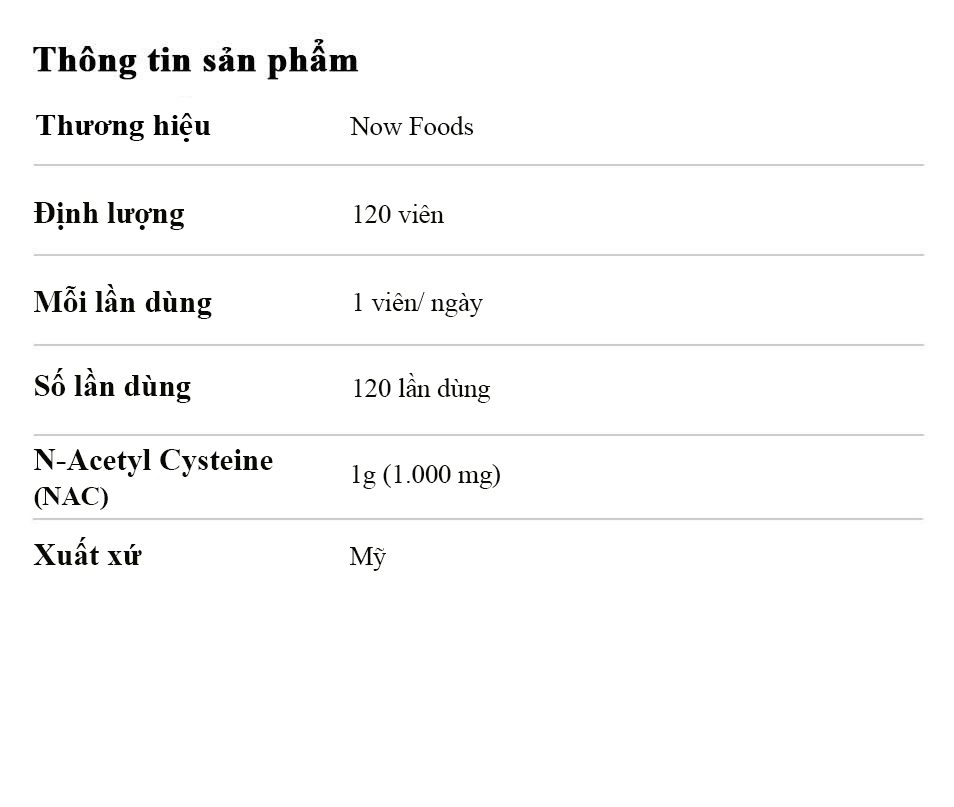 NOW NAC 1000mg là sản phẩm bổ sung N-Acetyl Cysteine (NAC) liều cao đến từ thương hiệu uy tín NOW Foods – Hoa Kỳ, hỗ trợ mạnh mẽ cho chức năng gan, phổi và hệ miễn dịch. Với hàm lượng 1000mg NAC mỗi viên, sản phẩm giúp tăng cường sản xuất glutathione nội sinh – một trong những chất chống oxy hóa mạnh nhất cơ thể, từ đó giải độc gan, bảo vệ tế bào khỏi gốc tự do, đồng thời cải thiện chức năng hô hấp và giảm viêm hiệu quả. NOW NAC 1000mg còn hỗ trợ làm sạch phổi, tăng sức đề kháng, giúp cơ thể chống lại tác nhân ô nhiễm và vi khuẩn, đặc biệt phù hợp với người sống trong môi trường độc hại, người hút thuốc, người thường xuyên dùng thuốc tây hoặc người cần tăng cường khả năng thải độc. Sản phẩm không chứa gluten, không đậu nành và đạt chuẩn GMP, an toàn khi sử dụng lâu dài. |