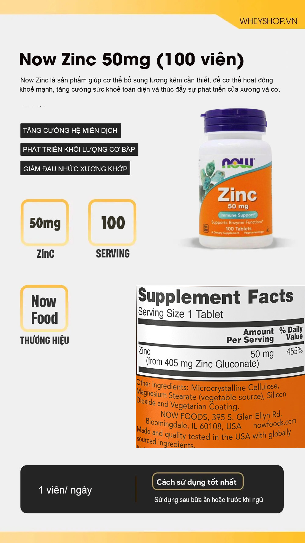 Now Zinc 50mg là viên uống bổ sung kẽm Zinc giúp nâng cao sức khỏe dành cho người dùng và cân bằng dinh dưỡng trong cơ thể. Cách sử dụng hiệu quả nhất: