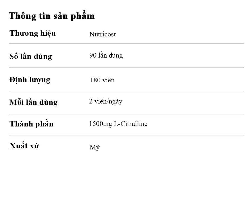 L-Citrulline: 1.500 mg / khẩu phần