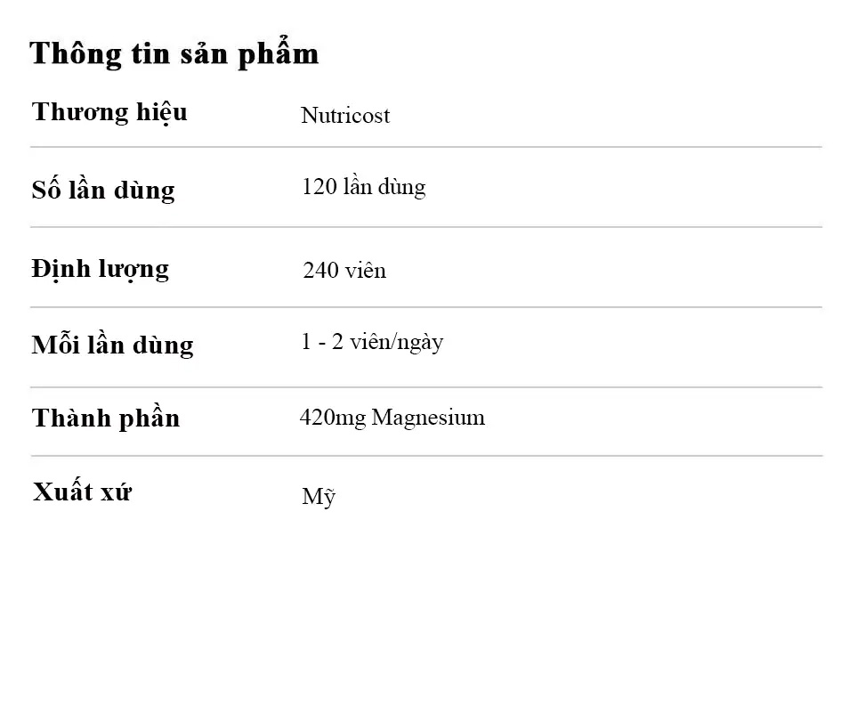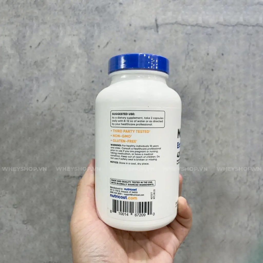 Thành phần Nutricost Magnesium đến từ magnesium oxide + magnesium glycinate.