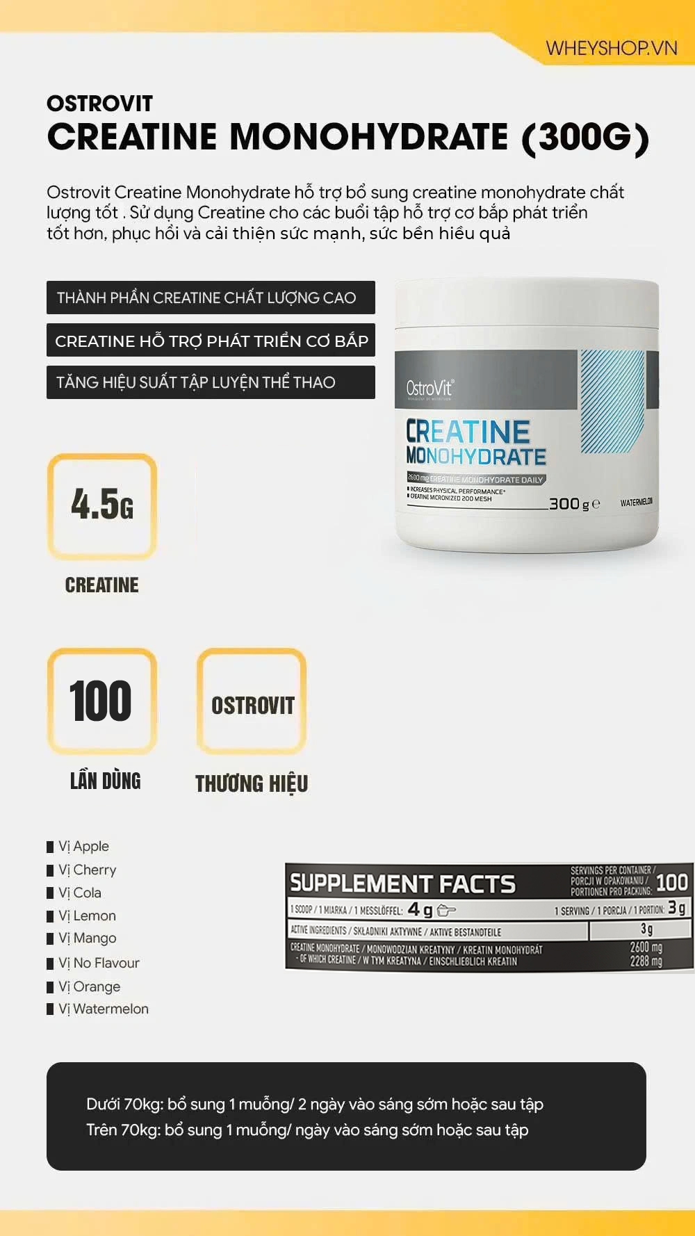 Đây là sản phẩm bổ sung Creatine Monohydrate bán chạy hàng đầu hiện nay, Ostrovit Creatine mang tới nhiều lợi ích:
