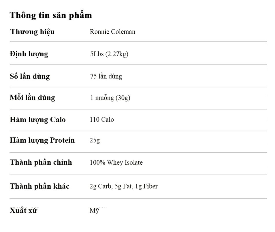 Thương hiệu: Ronnie Coleman Xuất xứ: Mỹ