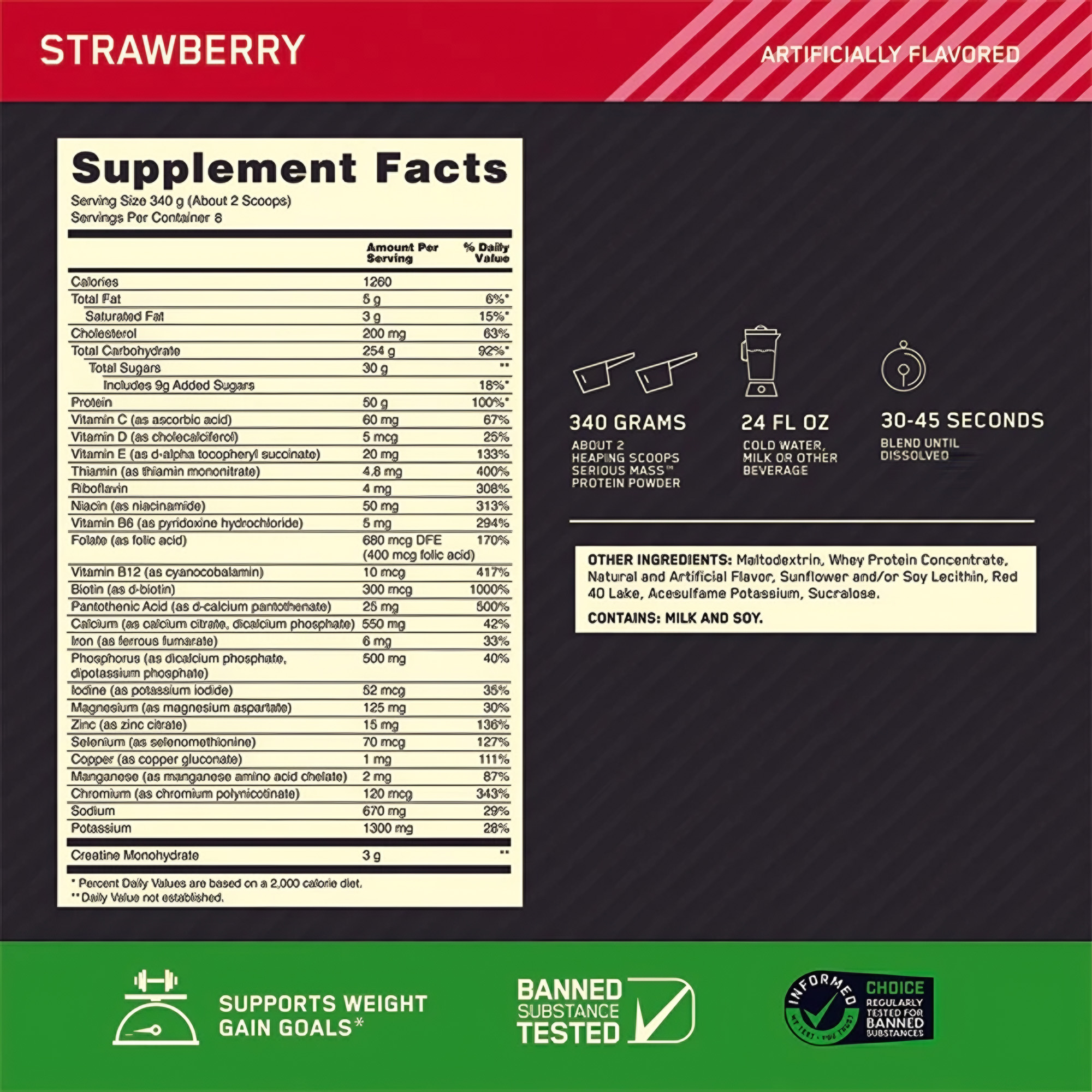 Cũng giống như các dòng sản phẩm sữa tăng cân nhanh khác, Sữa Tăng Cân Serious Mass cung cấp cho bạn nguồn dinh dưỡng đầy đủ với hàm lượng lớn, hỗ trợ cho quá trình tăng cân tăng cơ được hiệu quả và nhanh chóng hơn bao giờ hết: