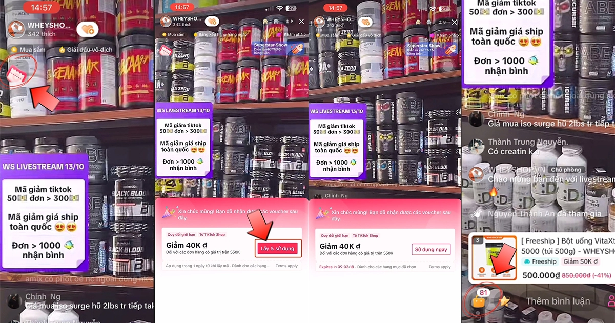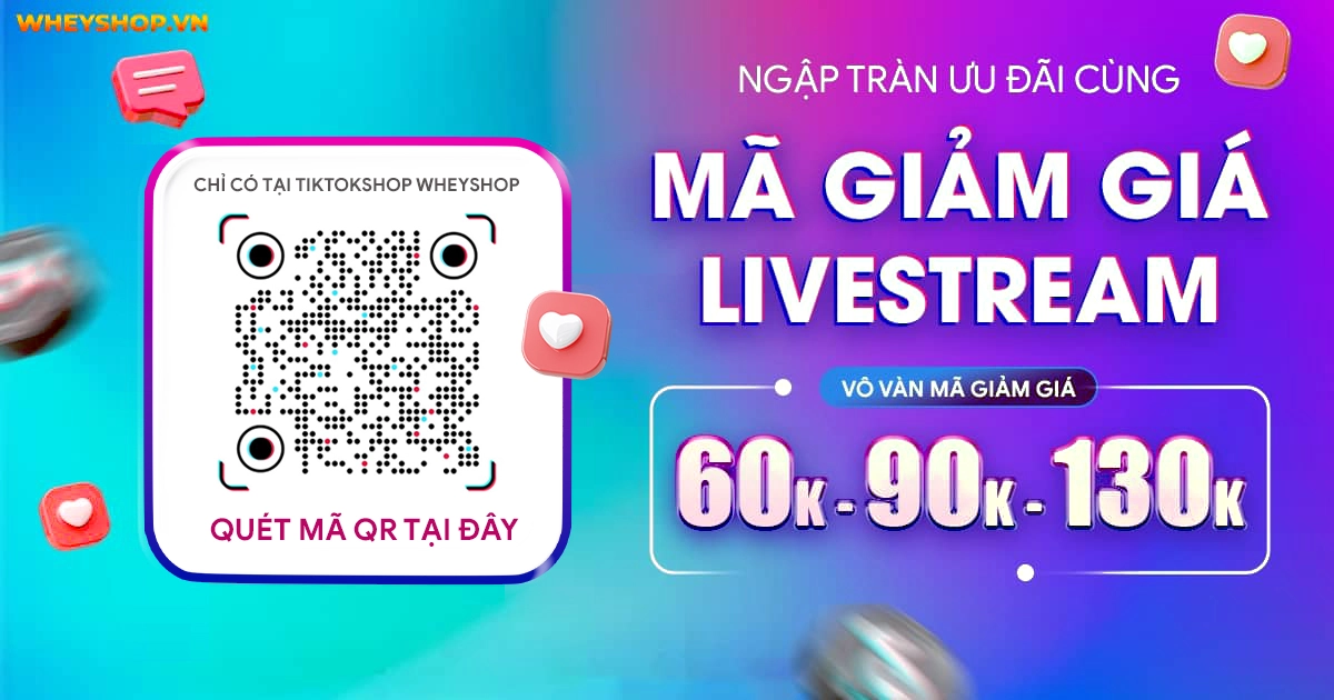 Rất nhiều mã giảm giá hấp dẫn đang chờ đợi các bạn tại phiên LiveStream trên TikTok Shop của WheyShop :