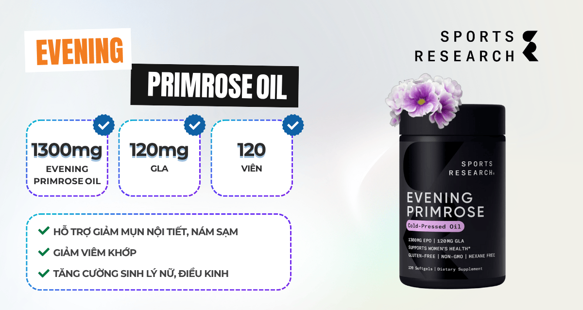 Evening Primrose Oil của Sports Research là tinh dầu hoa anh thảo chất lượng cao, hỗ trợ cân bằng nội tiết và chất béo tốt.