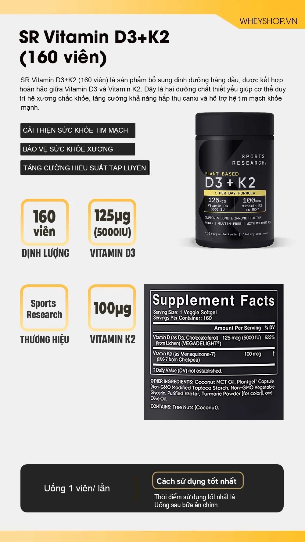 WheyShop là nơi bán thực phẩm bổ sung uy tín tại Việt Nam. Nhiều vận động viên và người tiêu dùng tin tưởng chọn WheyShop. WheyShop cam kết cung cấp SR Vitamin D3+K2 chính hãng, có giấy tờ chứng nhận. Đội ngũ tư vấn viên chuyên nghiệp sẵn sàng hỗ trợ khách hàng chọn sản phẩm phù hợp và giải đáp thắc mắc.