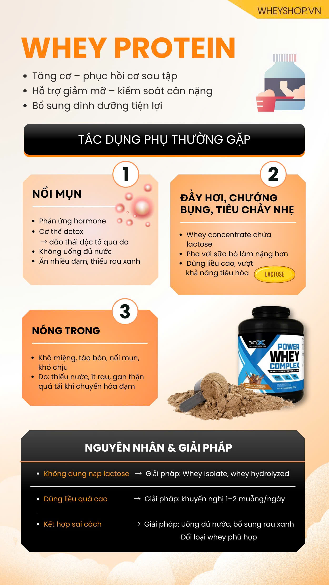 Tác dụng phụ của Whey Protein: Có gây nổi mụn, nóng trong không?