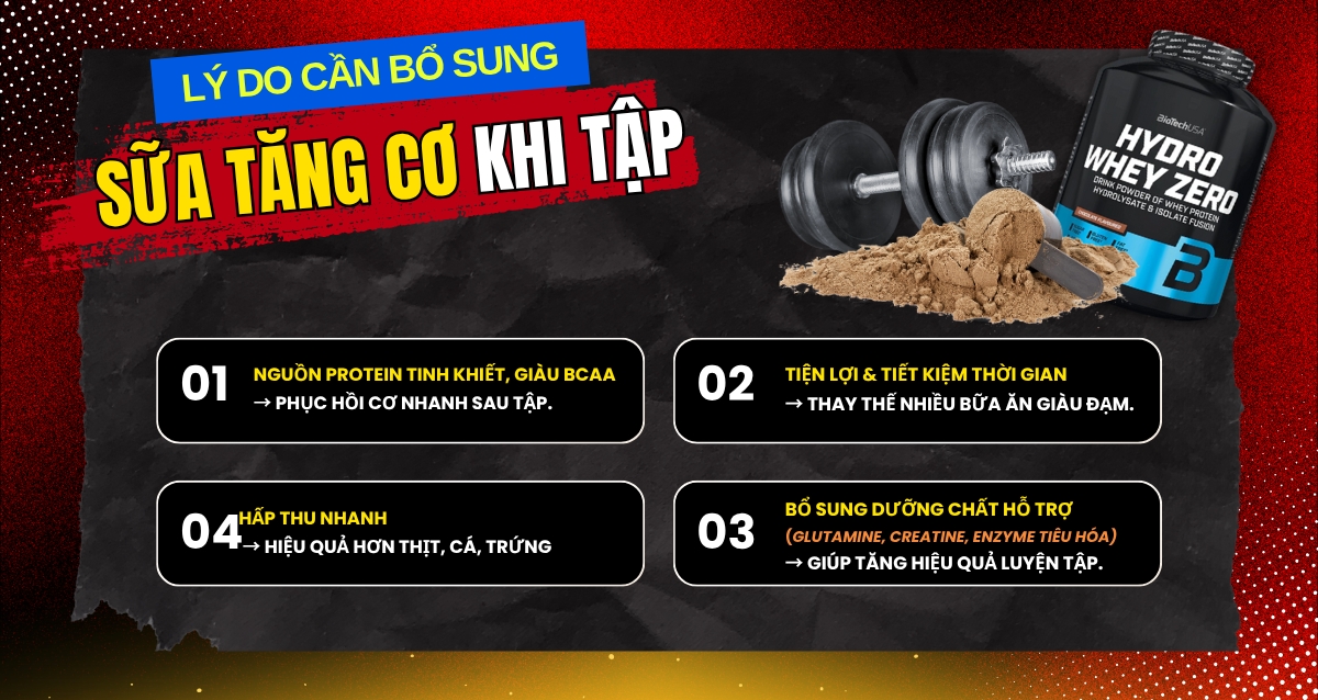 Tập luyện chăm chỉ là một phần, nhưng dinh dưỡng mới là chìa khóa quyết định sự phát triển cơ bắp. Sữa tăng cơ không phải “thần dược” thay thế hoàn toàn bữa ăn, nhưng lại là công cụ cực kỳ hữu ích giúp gymer bổ sung protein nhanh, phục hồi cơ hiệu quả và tối ưu thành quả tập luyện. Nếu bạn đang trên con đường xây dựng hình thể săn chắc, đừng quên thêm một ly whey protein vào chế độ hằng ngày - chắc chắn bạn sẽ cảm nhận sự khác biệt.