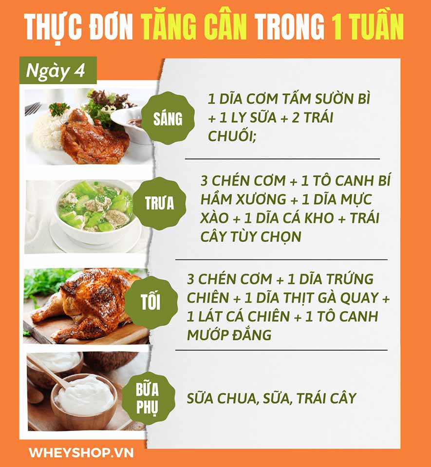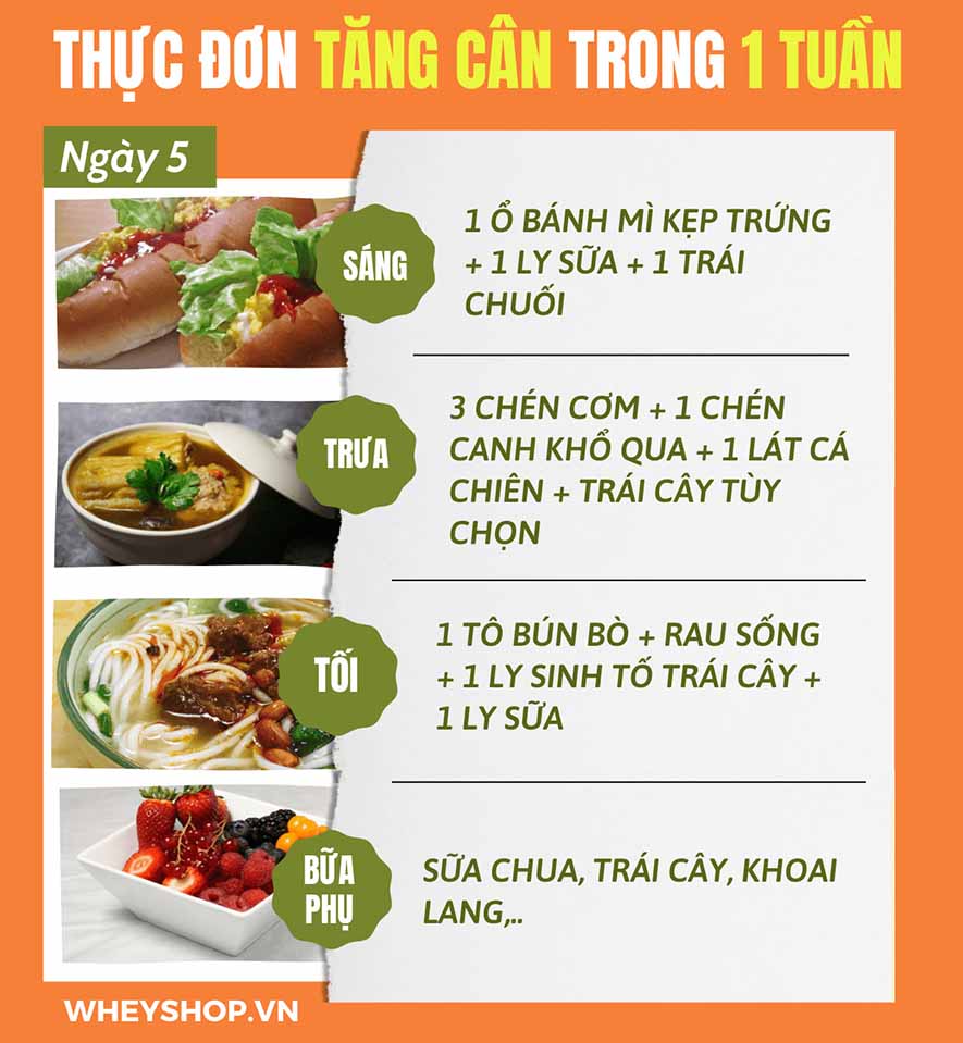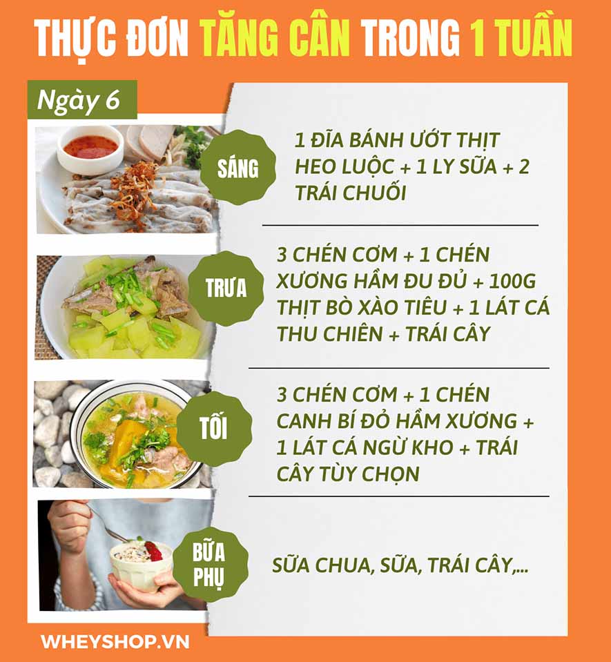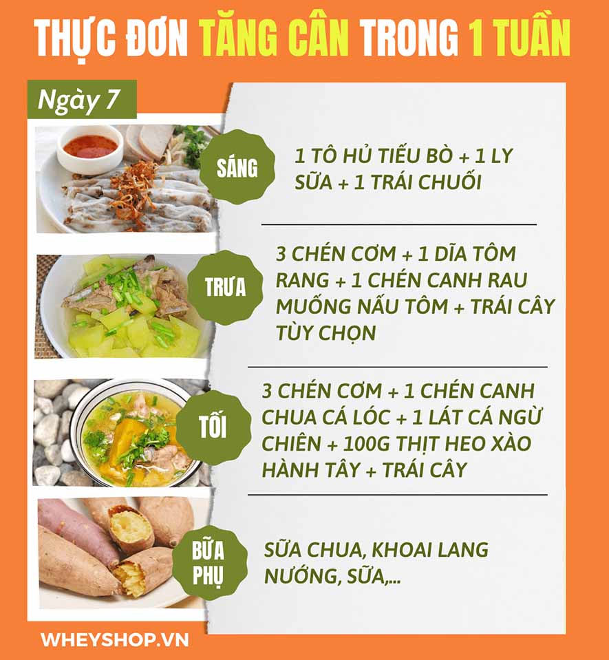 => Tham khảo thêm 7 thực đơn tăng cân hiệu quả nhất cho người gầy tại: https://wheyshop.vn/thuc-don-tang-can.html