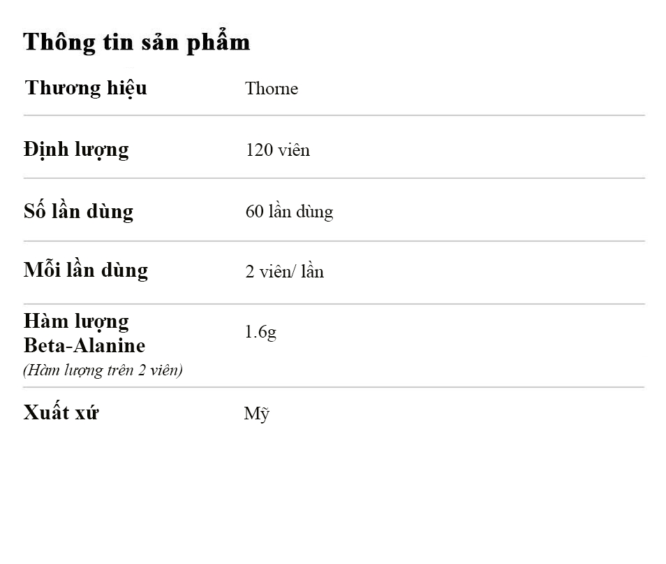 ƯU ĐIỂM CỦA SẢN PHẨM Điểm đặc biệt của Thorne Beta Alanine SR nằm ở công nghệ phóng thích chậm (Sustained-Release), giúp beta-alanine được hấp thu từ từ, duy trì hiệu quả ổn định mà không gây cảm giác ngứa ran khó chịu thường gặp khi dùng beta-alanine liều cao. Cơ bắp nhờ đó được bổ sung carnosine đều đặn, giúp giảm tích tụ axit lactic, tăng sức bền và kéo dài hiệu suất tập luyện. Đây chính là lợi thế lớn khiến Thorne Beta Alanine SR được nhiều gymer và vận động viên ưa chuộng khi muốn nâng tầm thể lực mà vẫn đảm bảo sự thoải mái, an toàn. |