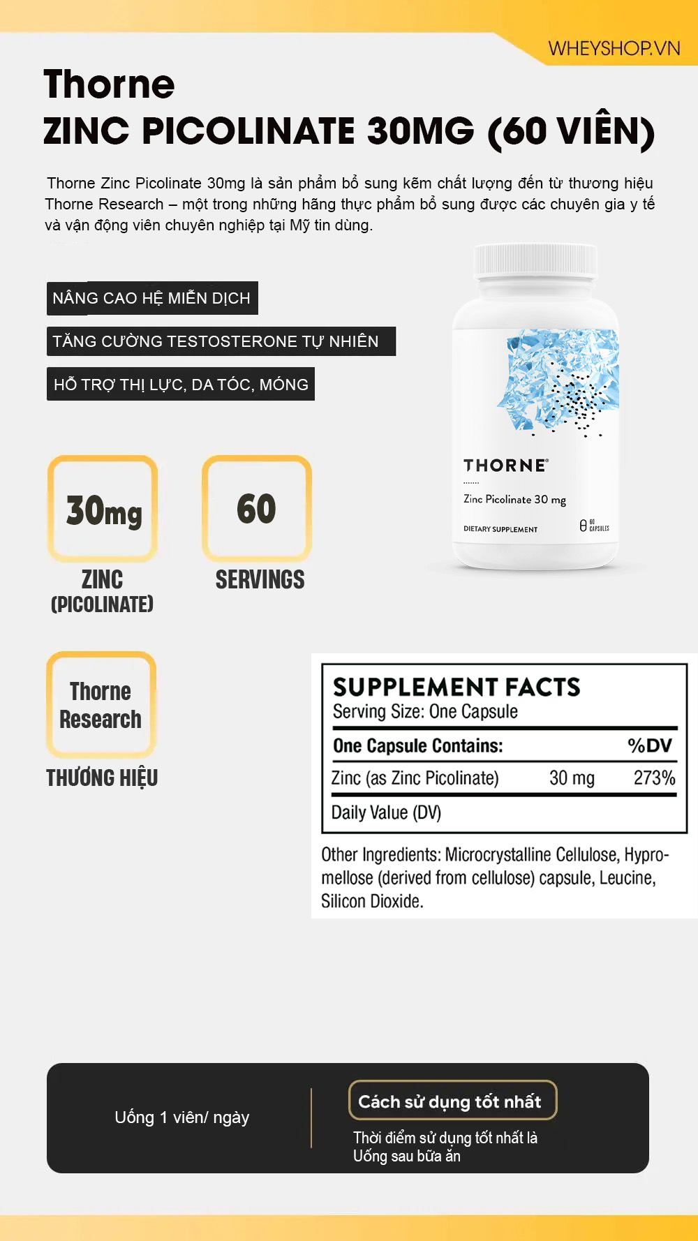 Quý khách có thể mua Thorne Zinc Picolinate 30mg chính hãng tại WheyShop – hệ thống thực phẩm bổ sung uy tín, đảm bảo chất lượng và nguồn gốc rõ ràng.