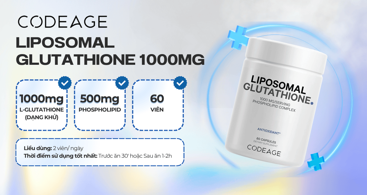 Phiên bản 1000mg mang đến hàm lượng glutathione cao hơn, phù hợp với người có nhu cầu chống oxy hóa mạnh hoặc cần phục hồi sức khỏe chuyên sâu. Công nghệ liposomal giúp hoạt chất hấp thụ nhanh hơn, hiệu quả cao hơn so với dạng thông thường. Đây là lựa chọn lý tưởng cho gymer, người làm việc căng thẳng hoặc cần cải thiện da và gan.