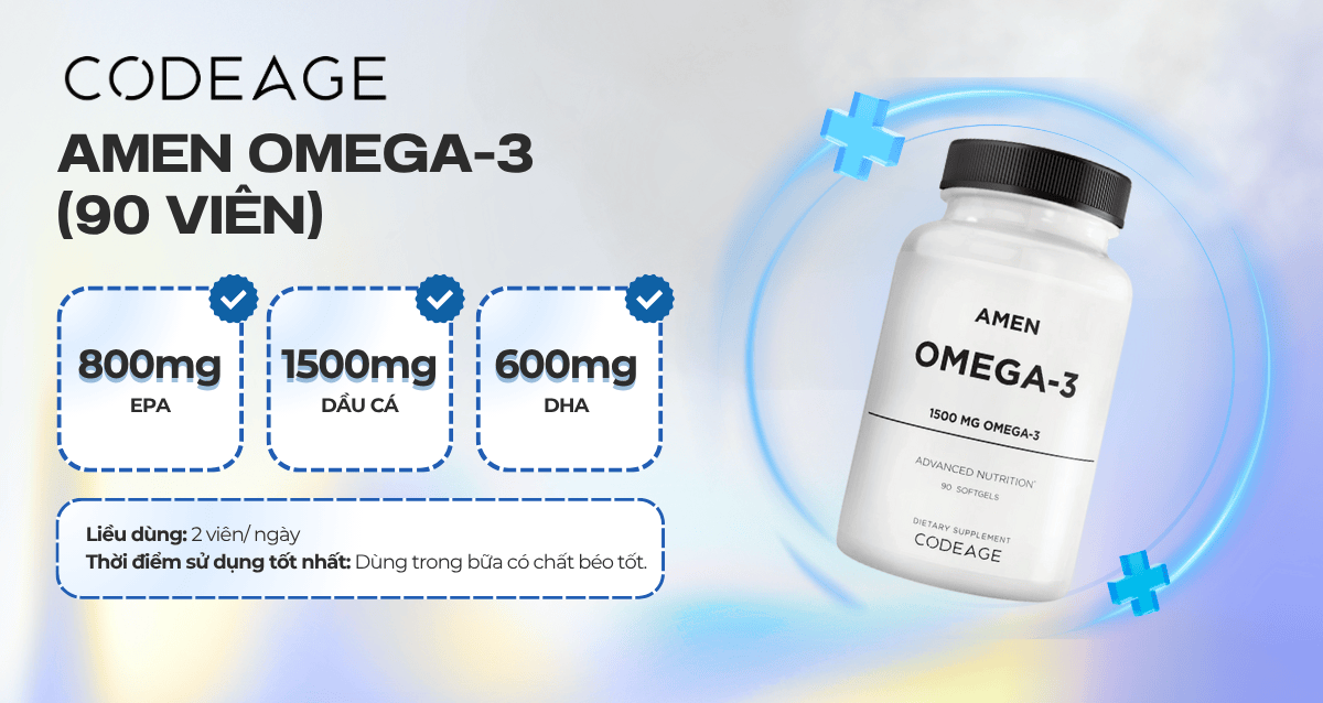 Code Age Amen Omega-3 cung cấp EPA và DHA tinh khiết từ nguồn cá chất lượng cao, hỗ trợ sức khỏe tim mạch và não bộ. Sản phẩm được sản xuất với quy trình hiện đại, đảm bảo độ tươi và tinh khiết, không gây mùi tanh khó chịu. Rất phù hợp cho người tập luyện, người bận rộn hoặc người muốn chăm sóc tim mạch dài hạn.
