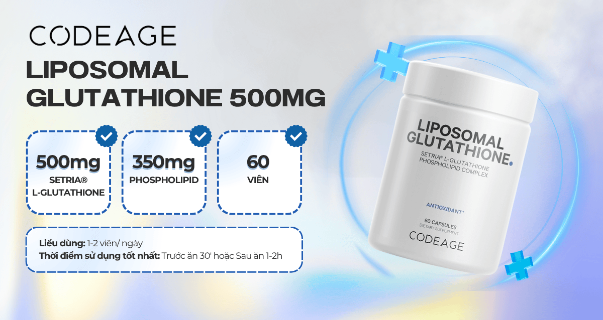 Code Age Liposomal Glutathione 500mg là sản phẩm được thiết kế nhằm nâng cao khả năng chống oxy hóa tự nhiên cho cơ thể. Công nghệ liposomal giúp bảo vệ glutathione khỏi sự phân rã trong hệ tiêu hóa, đảm bảo dưỡng chất được hấp thụ tối đa vào máu. Sản phẩm phù hợp cho những ai muốn cải thiện miễn dịch, hỗ trợ gan và nâng cao sức khỏe tổng thể.