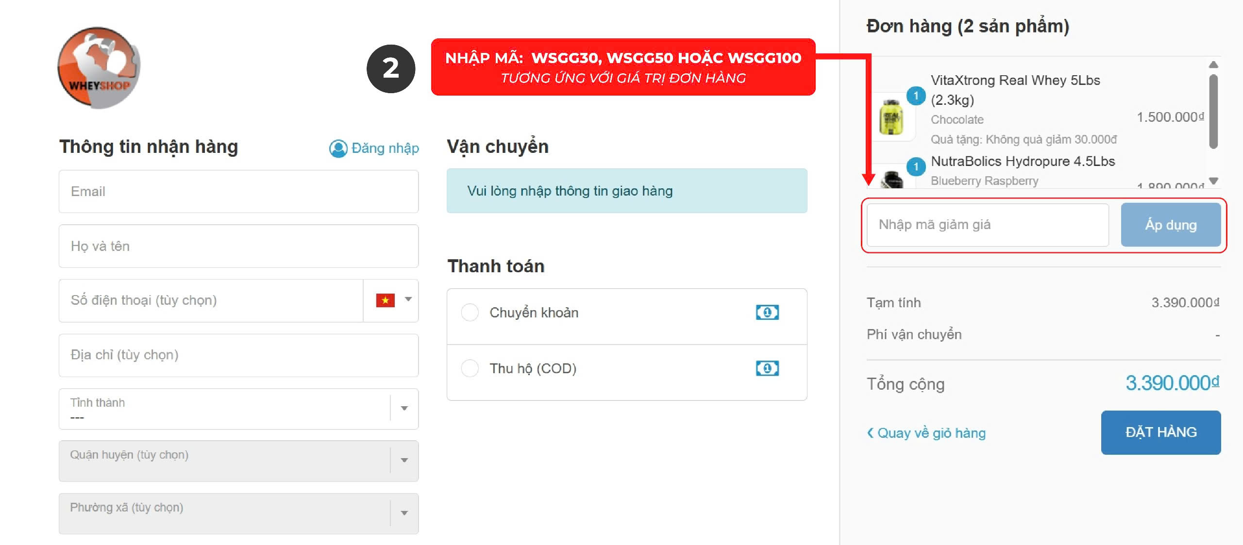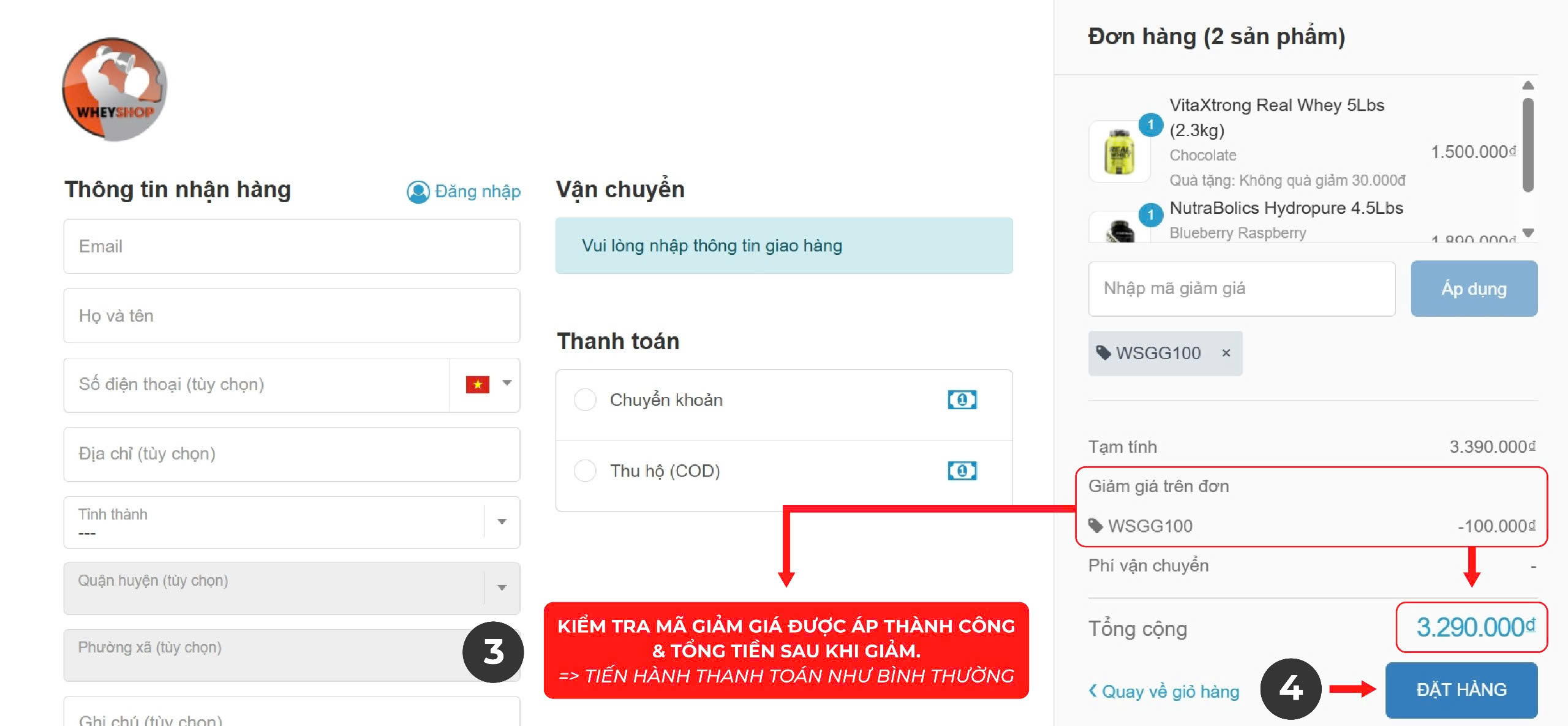 3. Cách sử dụng mã giảm giá tại WheyShop.vn