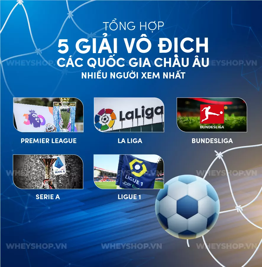 Bóng đá là môn thể thao hấp dẫn nhất mang lại nhiều cảm xúc cho người xem. Nếu bạn không biết, Châu Âu là vùng đất bóng đá hội tụ những chân sút vàng hay những ngôi sao huyền thoại trong làng “đá bóng” thế giới. Bài viết dưới đây, WheyShop tổng hợp 5 giải vô địch các quốc gia châu âu được nhiều người xem nhất.