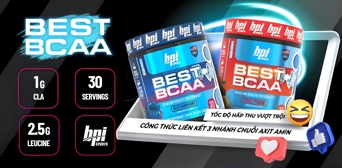 Best BCAA là dòng sản phẩm nổi bật của thương hiệu BPI Sports (Mỹ) – thương hiệu đã quá quen thuộc trong cộng đồng gymer nhờ sự sáng tạo trong công thức và hương vị. Best BCAA được thiết kế đặc biệt để hỗ trợ phục hồi cơ bắp, tăng sức bền, giảm đau nhức sau tập, đồng thời hạn chế tình trạng mất cơ trong quá trình tập luyện cường độ cao.