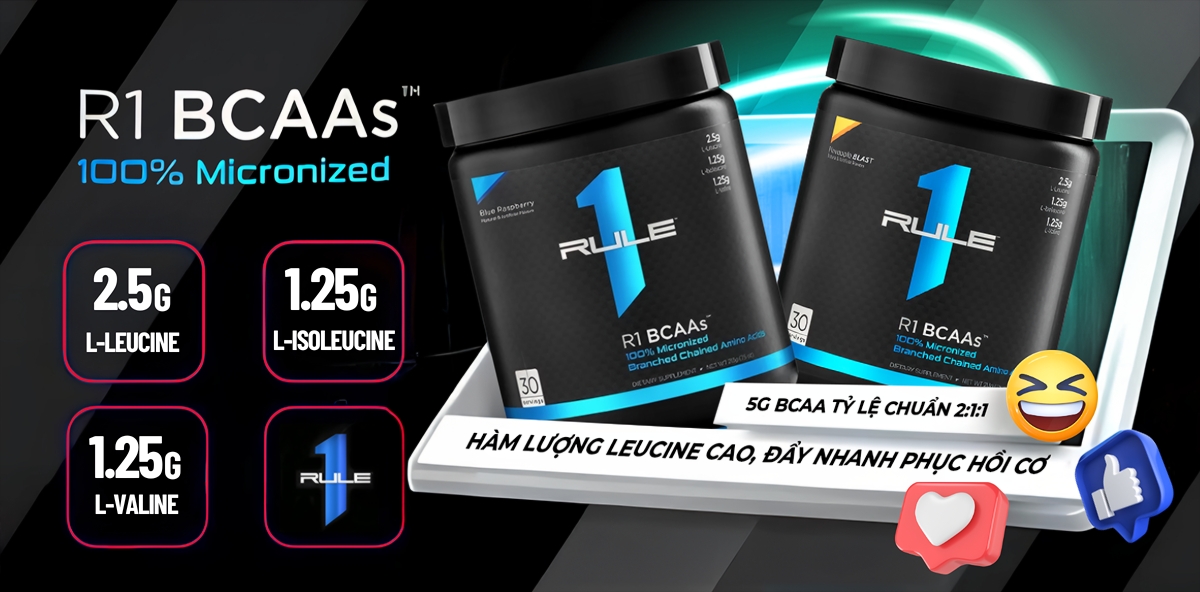 Tham khảo sản phẩm: Best BCAA, Rule 1 BCAA.