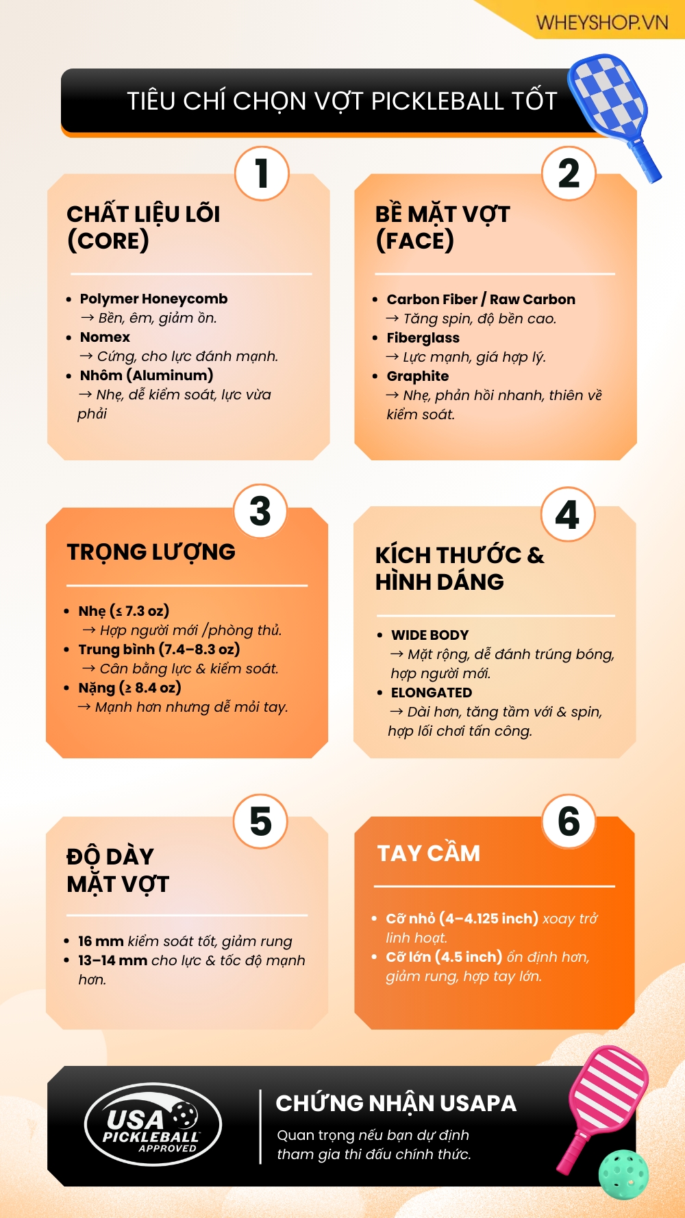 Bạn đang phân vân vợt pickleball nào tốt để đầu tư trong năm 2025? Hôm nay, cùng WheyShop tổng hợp 7 mẫu vợt đáng mua nhất 2025, mỗi mẫu đều được đánh giá chi tiết ưu - nhược điểm, giá bán và đối tượng phù hợp. Dù bạn cần vợt pickleball giá rẻ, vợt cho người mới, hoặc đơn giản muốn tìm một chiếc vợt pickleball tốt - tất cả gói gọn trong bài viết này.