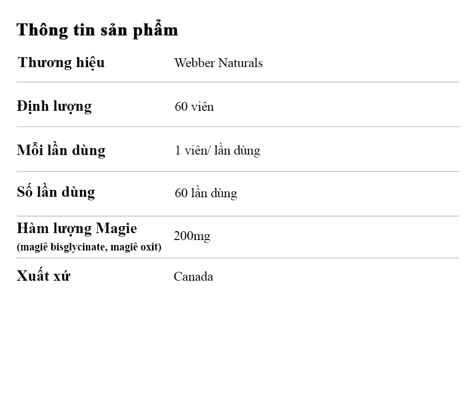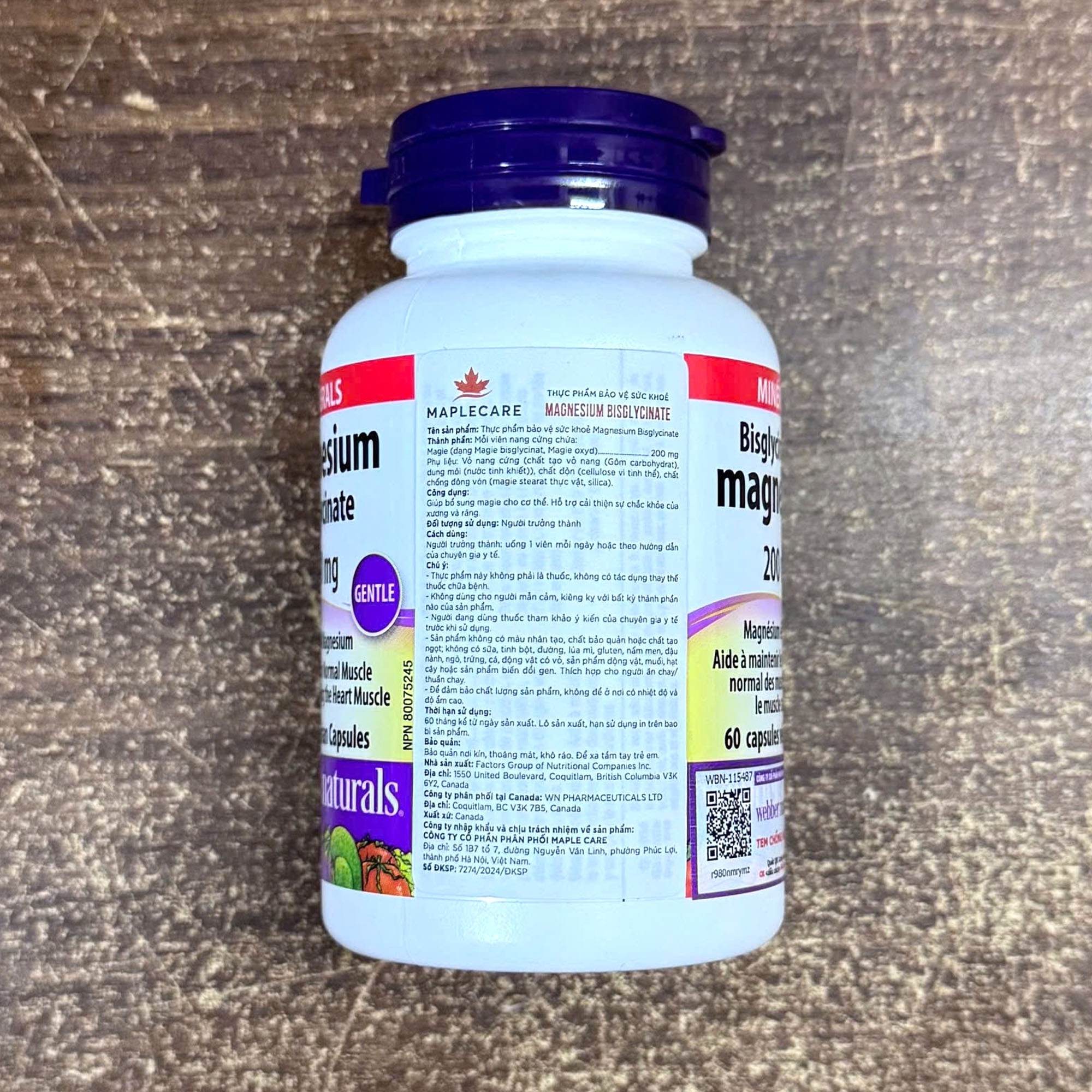 Webber Naturals Magnesium Bisglycinate 200mg phù hợp cho người lớn cần bổ sung magie, người hay căng thẳng, mất ngủ, chuột rút cơ bắp hoặc thiếu magie do ăn uống không đủ.