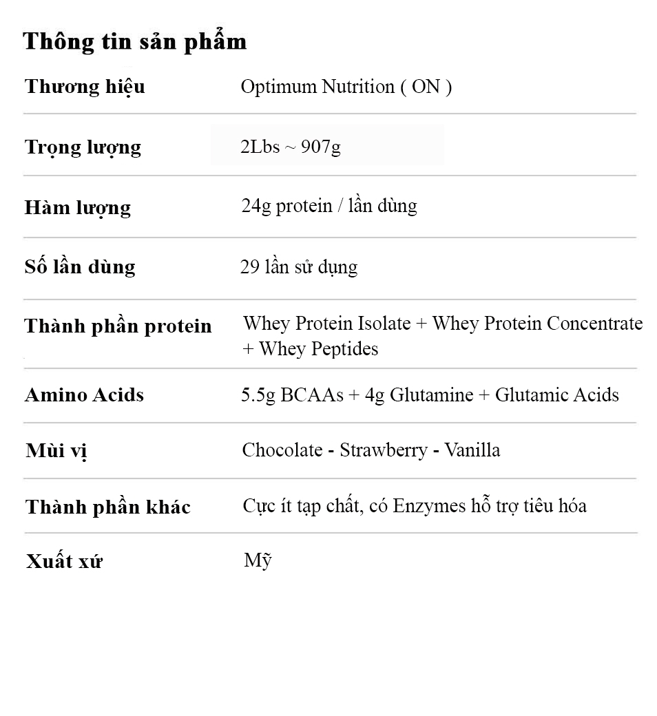 Với những ưu điểm nổi bật này, Whey Gold Standard chính là sự lựa chọn hoàn hảo cho những ai muốn tối ưu hóa quá trình tập luyện và phát triển cơ bắp một cách hiệu quả |