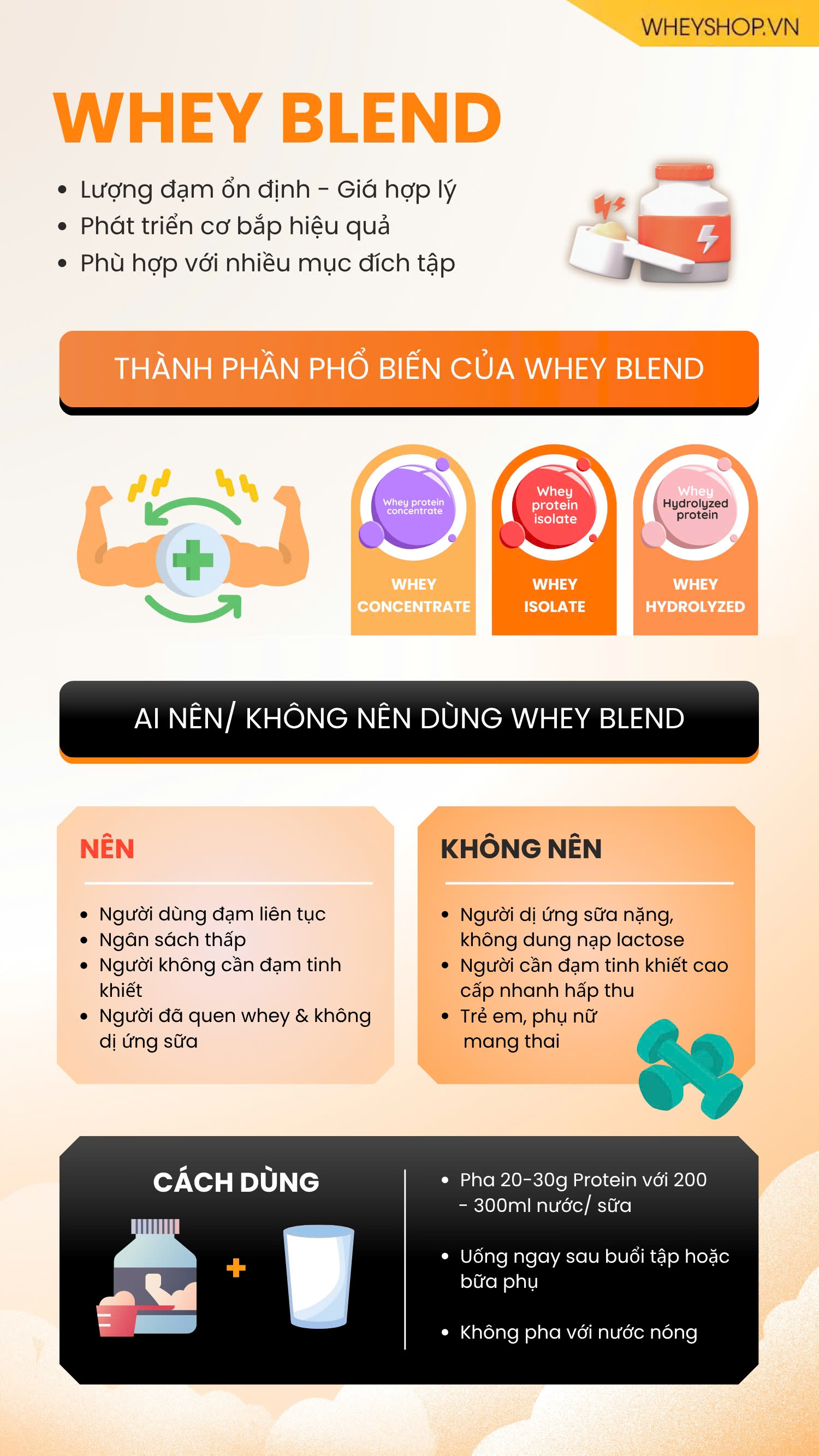 Nếu bạn muốn giá ổn – đạm tốt – uống không khó chịu → chọn Whey Blend
