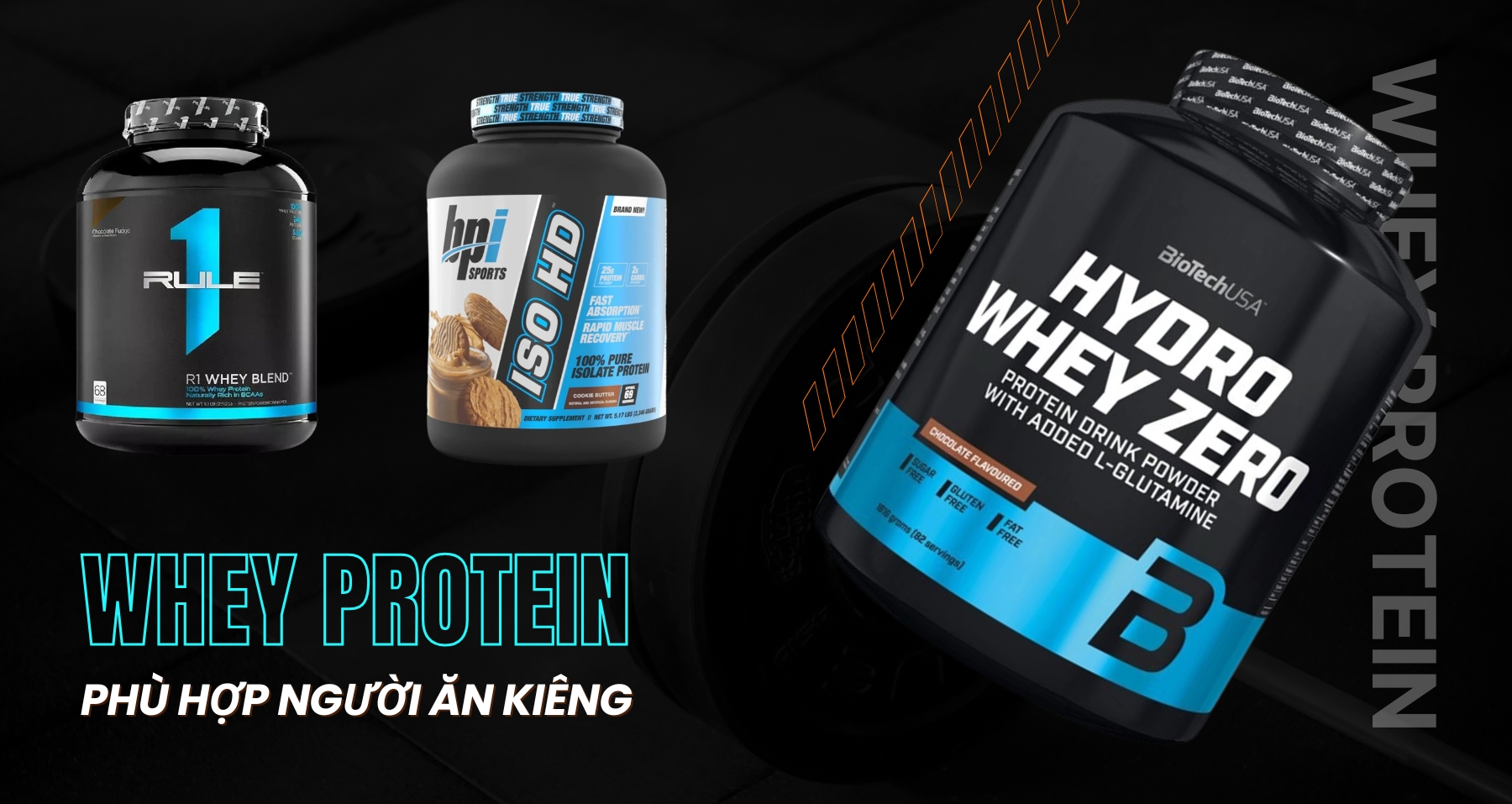 Ví dụ: Myprotein Impact Whey, NitroTech, Rule 1 Essential...
